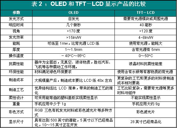 与液晶显示相比,这种全新的显示技术具有更薄更轻、主动发光、广视角、高清晰、响应快速、低能耗、低温、抗震性能优异、潜在的低制造成本、柔性和环保设计等等。可以说OLED具备了信息显示和器件制造所要求的几乎所有优异特征,被业界公认为是最理想和最具发展前景的下一代显示技术。尤其是其具备柔性设计的神奇特征,使得令人神往的可折叠电视、电脑的制造成为可能[9]。采用这种显示技术的单色有源矩阵分辨率达到XGA(1280×1024),而彩色的有源矩阵电致发光显示器目前的分辨率为VGA水平。